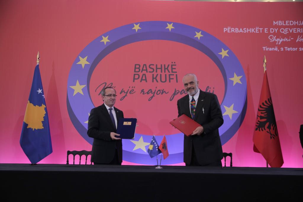 Mbledhja e dy qeverive, Shqipëri-Kosovë, u përmbyll me nënshkrimin e disa marrëveshjeve dhe protokolleve të bashkëpunimit dypalësh: