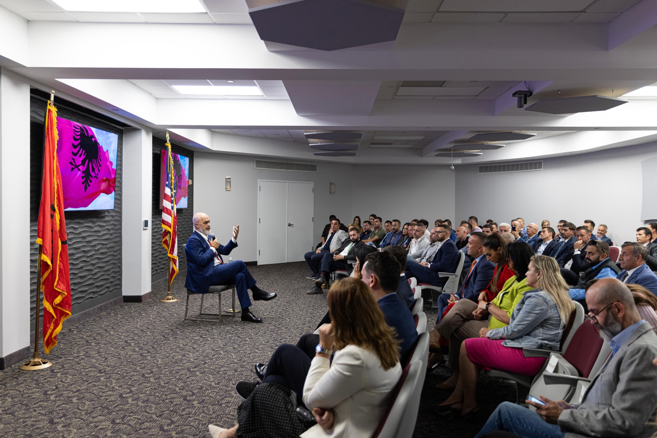 Me ftesë të aktivistit shqiptar dhe kreut të Këshillit Kombëtar të Diasporës Mark Gjonaj, Kryeministri Rama zhvilloi një bashkëbisedim me përfaqësues të shoqatave shqiptare në Amerikë.